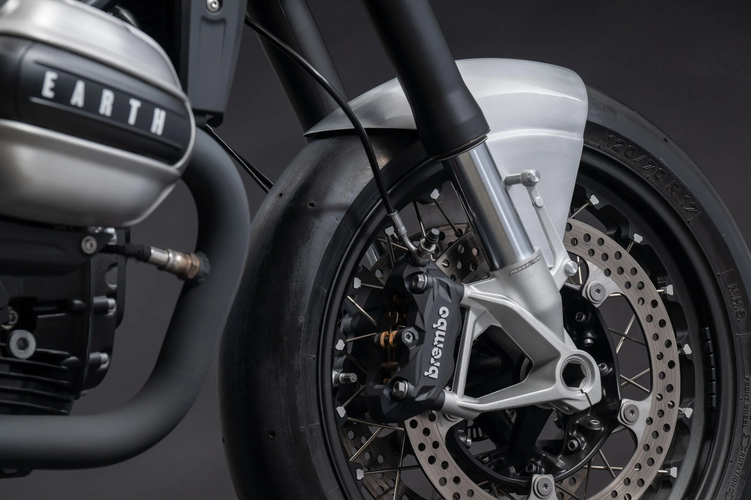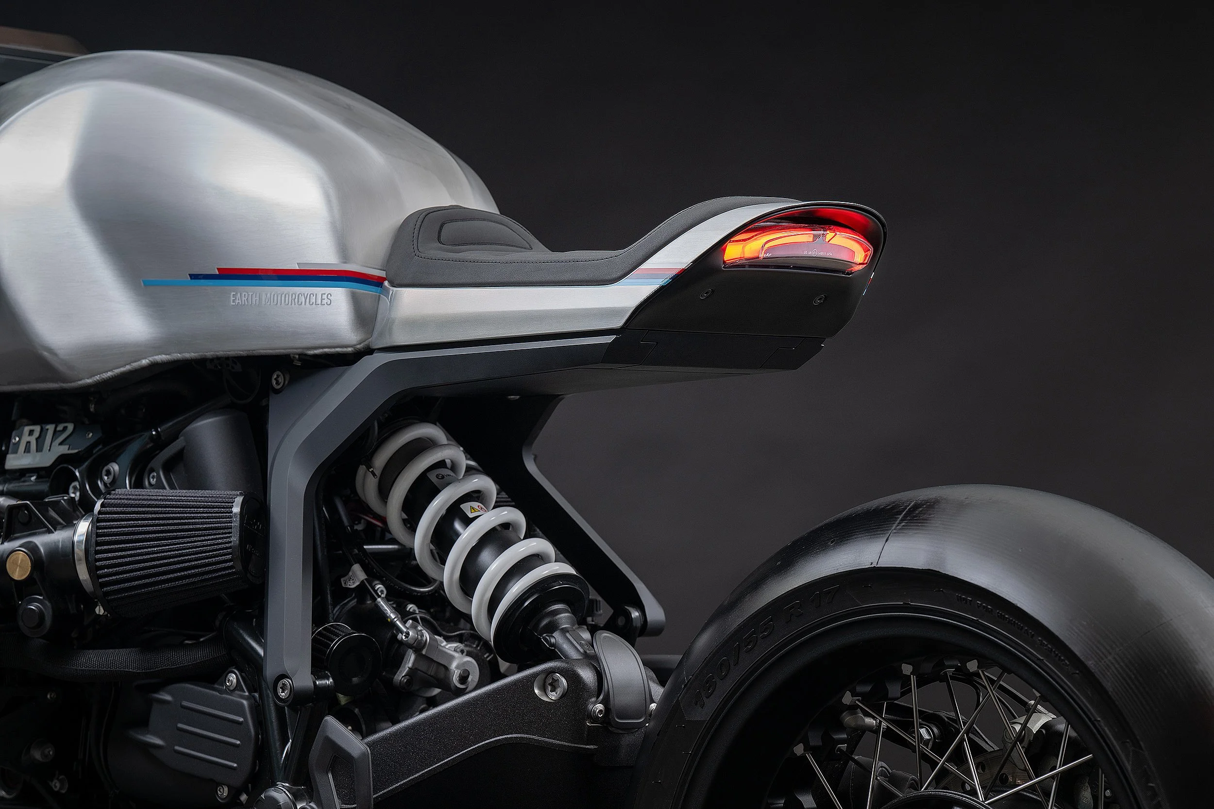 At the heart of this custom build lies its most groundbreaking innovation - the subframe with integrated subseat and a new, signature seat. Designed in collaboration between EARTH Motorcycles and the BMW engineering minds at Valta Engineering, this newly developed structure allows for an exceptionally clean silhouette - no visual disorder, no excess material. Every angle of the structure manifests precision and intent, echoing the minimalist philosophy that defines the entire bike.