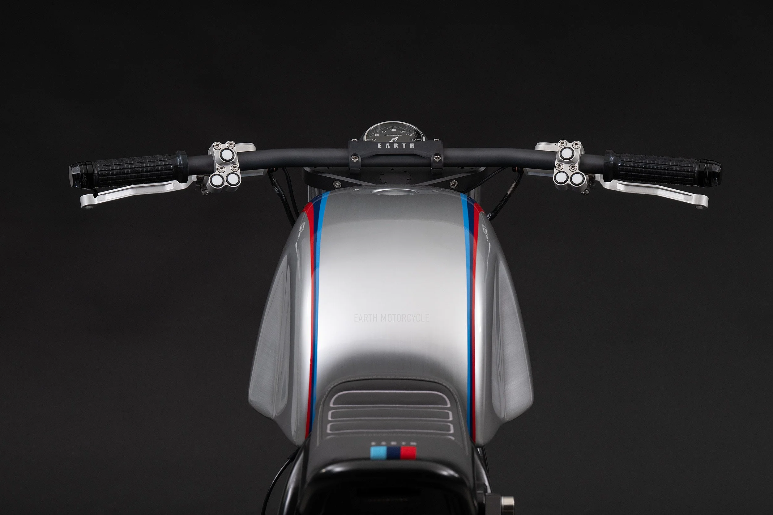 The R100R EARTH is the first production custom motorcycle by Earth Motorcycles from heritage production series, built on a unified industrial design with a clean horizontal line at its core. Based on the iconic BMW R100R from the ’90s, it blends heritage engineering with bold, minimal aesthetics and technical precision.